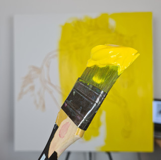I wanted this painting to reflect a sense of grit and determination, mirroring the perseverance we all needed during those challenging times. Working on such a large scale demanded that I work at a fast pace. Most of the subject had to be painted in one sitting in order to get the effect I wanted. The paint had to be wet in order to achieve the desired sgraffito markings, too much of a delay would jeopardise revealing the bright underlying yellow.